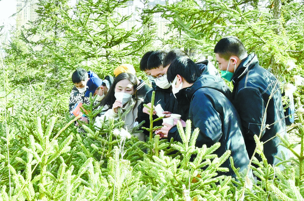 園區徒步收集植物種子。記者 李娜 魏雅琪 攝