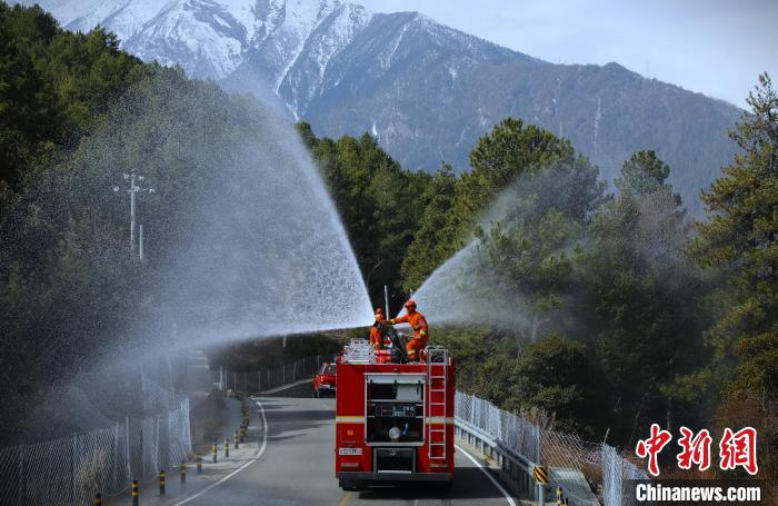 重點林區開展灑水增濕作業。 西繞拉翁 攝