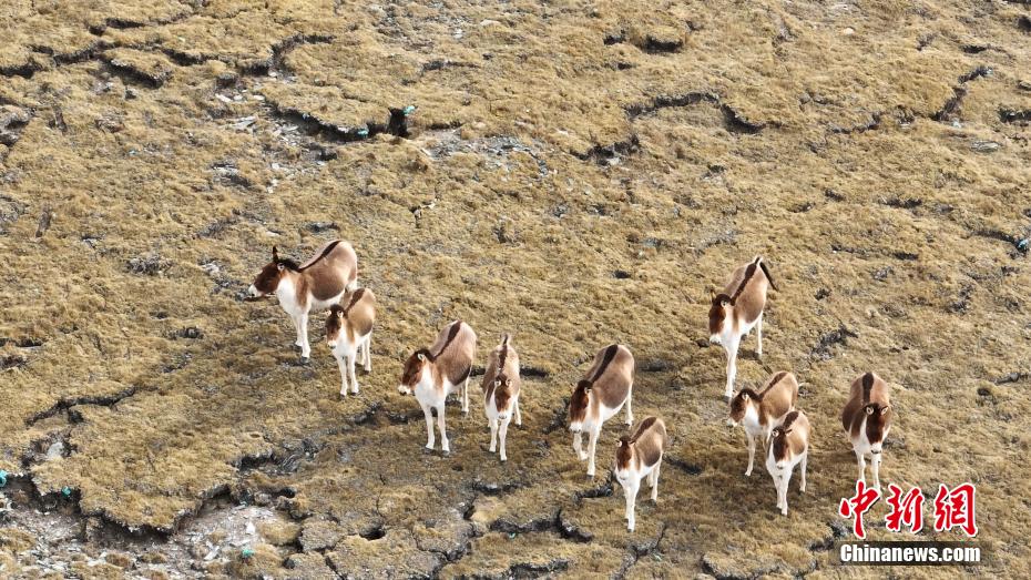 高原初春,馬鹿、藏野驢、藏狐等野生動(dòng)物在祁連山國(guó)家公園青海片區(qū)天峻縣境內(nèi)草場(chǎng)上覓食、棲息,悠閑自在。青海省海西蒙古族藏族自治州天峻縣大部地處祁連山國(guó)家公園青海片區(qū),近年來,該縣開展生態(tài)環(huán)境綜合治理,生態(tài)環(huán)境持續(xù)改善,珍稀野生動(dòng)物種群數(shù)量不斷增加。圖為航拍成群的藏野驢在天峻縣草場(chǎng)上覓食棲息。