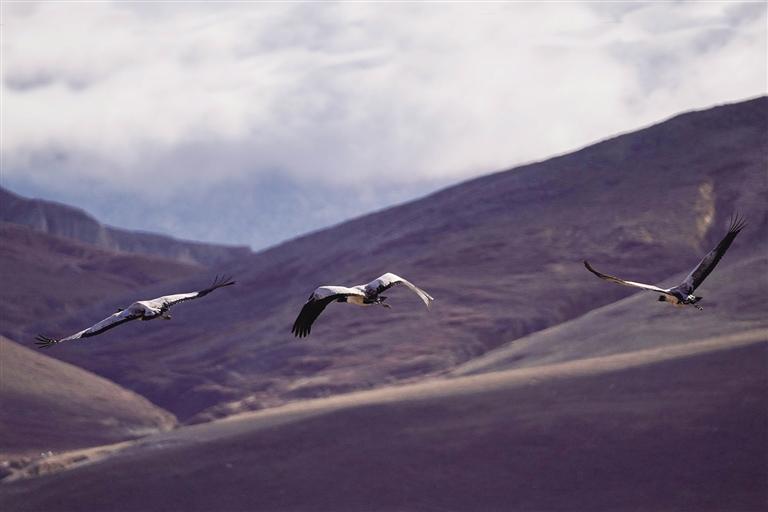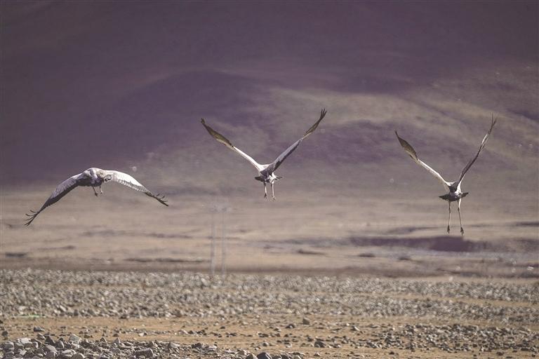 在西藏,黑頸鶴從越冬地到繁殖地有兩條線路:一條是拉薩到色林措,另一條則是從日喀則到色林措。整體來說,是從雅魯藏布江中游河谷黑頸鶴國家級自然保護區飛往色林措黑頸鶴保護區,兩個保護區之間有一條固定的黑頸鶴遷徙路線,每年黑頸鶴會在3月中旬從越冬地雅江中游河谷及其支流拉薩河、年楚河流域的“一江兩河”地區,飛去羌塘北部草原繁育后代;又會于11月中旬從繁殖地那曲的班戈縣、申扎縣、嘉黎縣,阿里的日土縣、普蘭縣,日喀則的昂仁縣,拉薩的當雄縣返回到越冬地。對于雅江中游河谷來說,它是冬候鳥;對于羌塘北部草原來說,它是夏候鳥。
