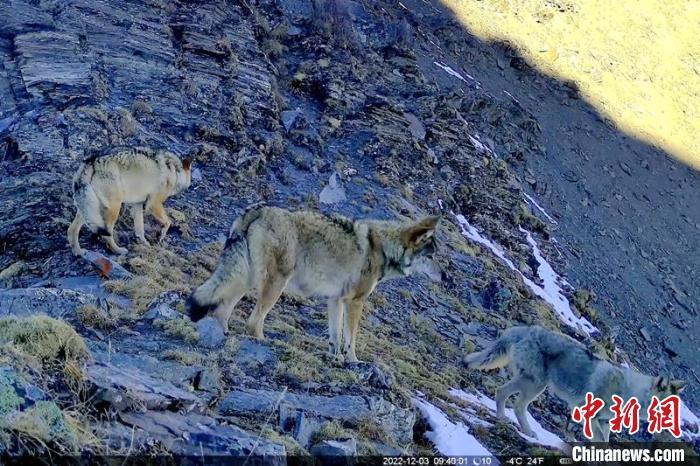 紅外線相機拍到的狼群?!⌒慢埧h林業和草原局供圖