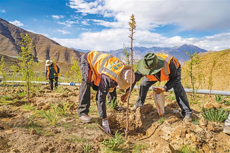 拉薩南北山綠化工程是西藏規模最大的營造林建設工程。2022年,拉薩市完成造林綠化55.87萬畝,林草生態建設促進群眾就業超過168萬人次。