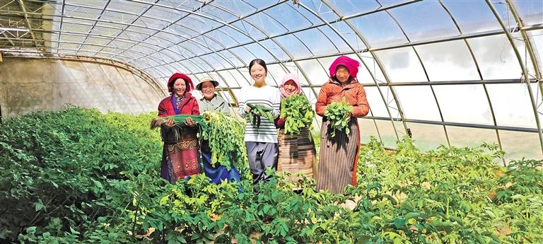 2017年,雙湖縣投建了11座蔬菜大棚。經過當地干部和牧民們努力耕耘和辛苦試驗,現在種植的蔬菜瓜果年產量可達4噸,每年給當地牧民群眾發放蔬菜分紅和現金分紅共計12萬元左右,857人從中受益。