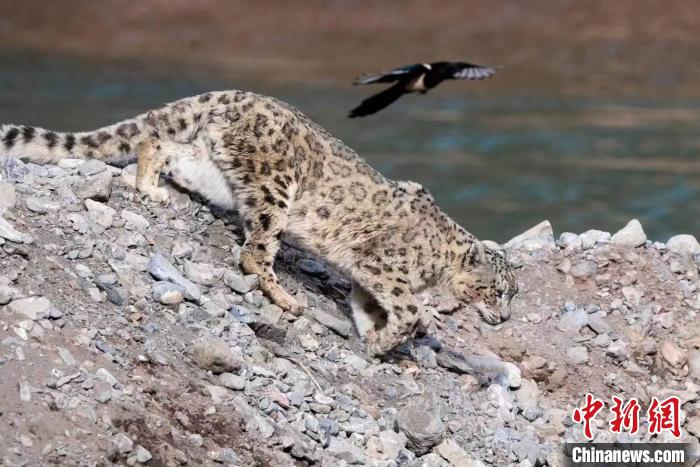 資料圖為攝影師在雜多縣境內拍攝的雪豹。雜多縣委宣傳部供圖