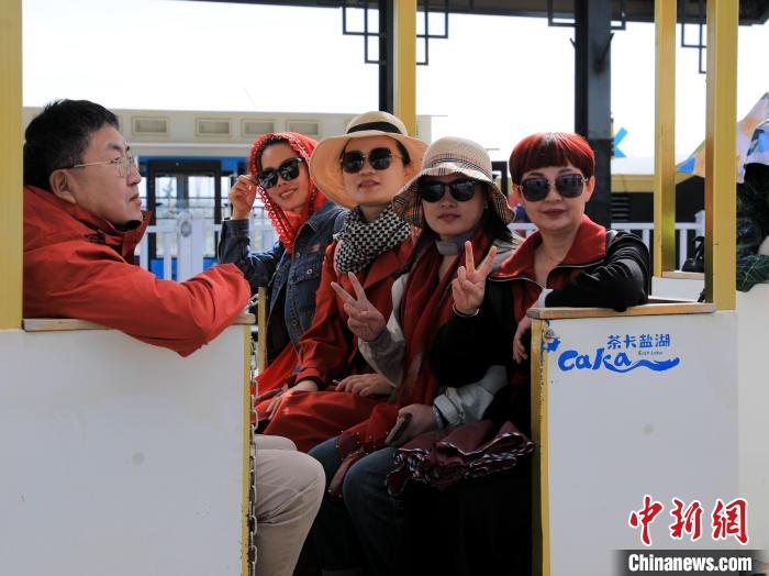 圖為游客乘坐茶卡鹽湖景區小火車。王生榮 攝