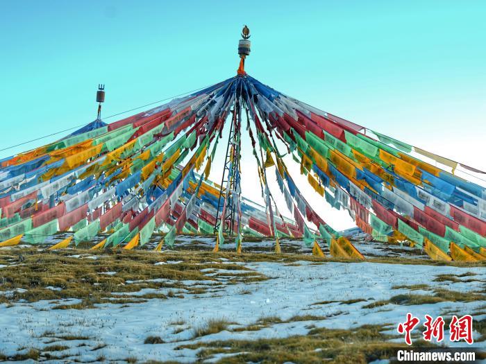 圖為青海省玉樹(shù)州曲麻萊縣麻多鄉(xiāng)約古宗列盆地內(nèi)的經(jīng)幡。 劉洋 攝
