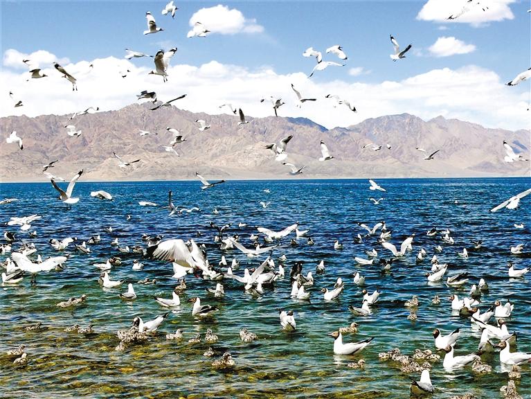 班公湖位于西藏阿里地區日土縣西部,湖面平均海拔4200米。它的奇特之處在于,由東向西水中含鹽量遞增,湖水在陽光下呈現墨綠、淡綠和深藍等不同的顏色。這里碧波蕩漾,水草豐美,是名副其實的西陲明珠。