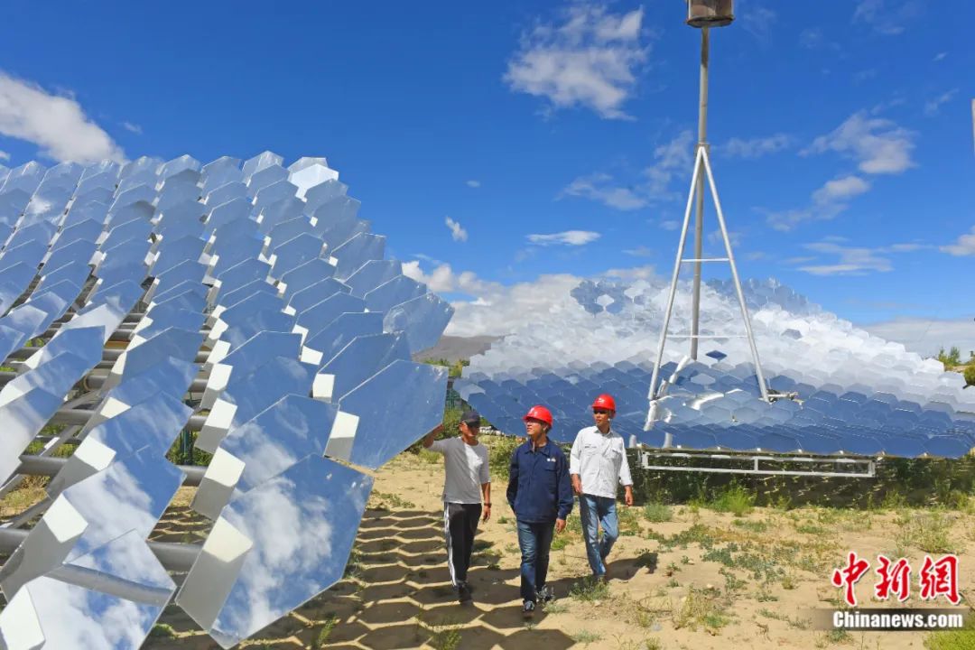 2020年6月,西藏山南市扎囊縣,工作人員對西藏首座多碟共焦塔式聚光集熱器的電力設施進行驗收。宋衛星 攝