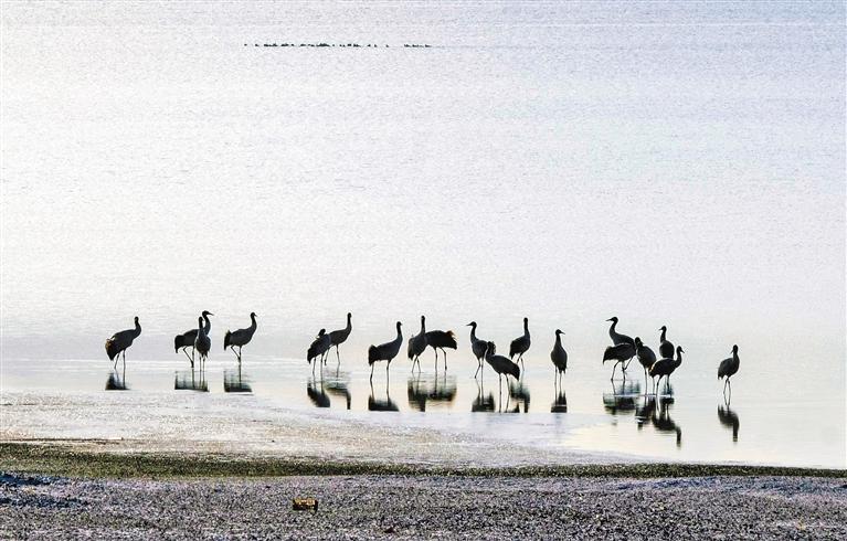 “生態好不好,看鳥就知道。”近日,在西藏越冬的“老朋友”黑頸鶴越來越多。每年3月中旬,黑頸鶴會從越冬地——雅江中游河谷及其支流拉薩河、年楚河流域的“一江兩河”地區,飛去羌塘北部草原等地繁育后代;10月中下旬又從繁殖地——那曲的班戈縣、申扎縣、嘉黎縣,阿里的日土縣、普蘭縣,日喀則的昂仁縣及拉薩的當雄縣返回到越冬地。黑頸鶴的成群遷徙、停歇或繁殖,正是生態環境持續向好的“最美注腳”。
