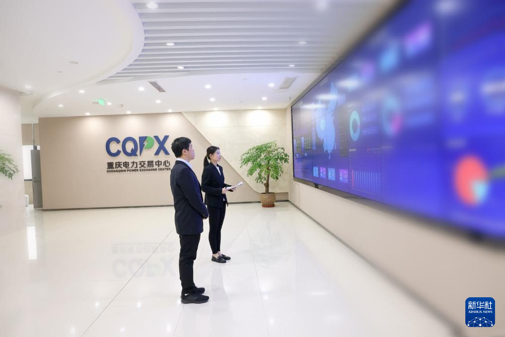 圖為工作人員正在查看電力交易情況。(國(guó)網(wǎng)重慶市電力公司供圖)