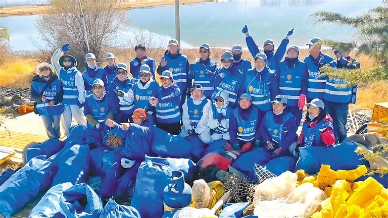圖為“美麗公約”拉薩格?;ㄖ驹阜贞犜诶_河城區段清理兩岸垃圾。記者 格桑倫珠 攝
