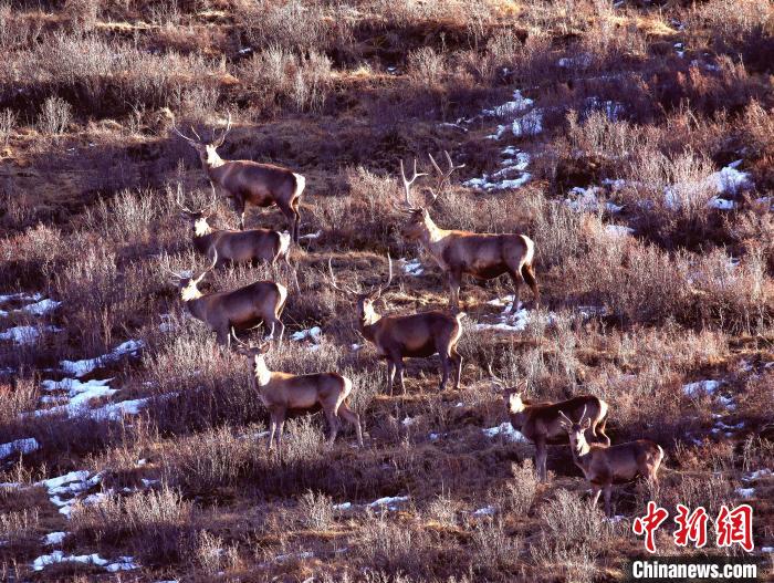 青海烏蘭:50多只野生馬鹿在崇山峻嶺中奔跑覓食