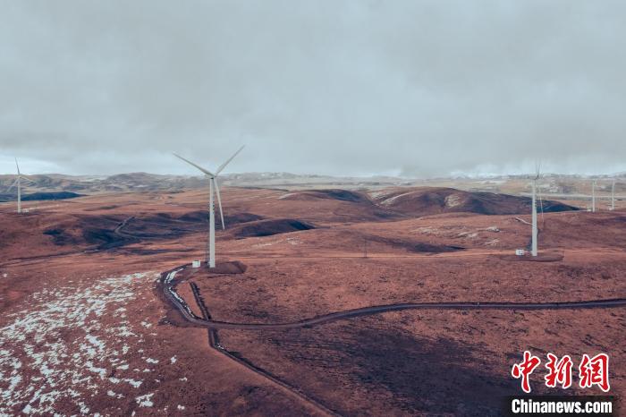 2023年12月1日,航拍西藏那曲色尼區100兆瓦風電項目。趙清鵬 攝