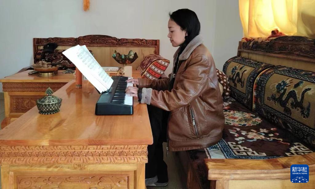 走進西藏林芝市察隅縣上察隅鎮永寧村一戶村民家里,藏式茶幾上的電子琴引人矚目,一旁展開的五線譜本上寫滿了筆記。