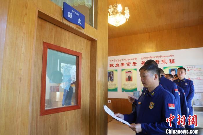 圖為1月9日獻(xiàn)血現(xiàn)場(chǎng),西藏林芝森林消防排隊(duì)等候獻(xiàn)血。王澤棟 攝