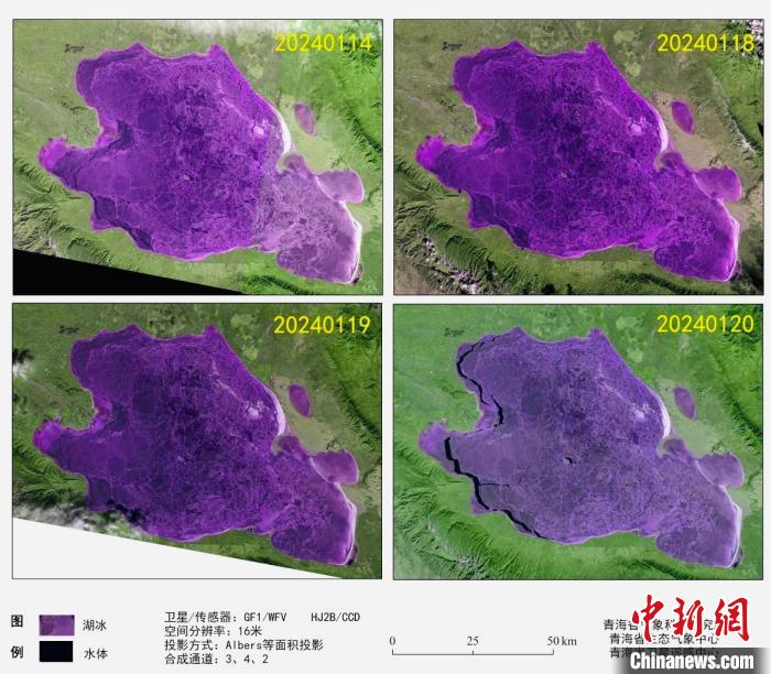 據介紹,衛星遙感監測顯示,1月14日、18日、19日,青海湖湖泊表面完全凍結,依據《高原湖泊湖冰物候遙感監測技術標準》(DB63/T1929-2021),湖泊表面連續5日完全被冰覆蓋的首日為完全凍結日,因此判定1月14日為青海湖完全凍結日。