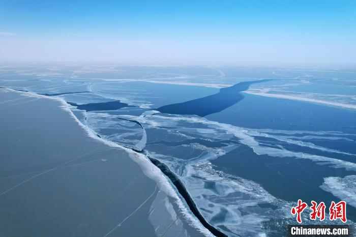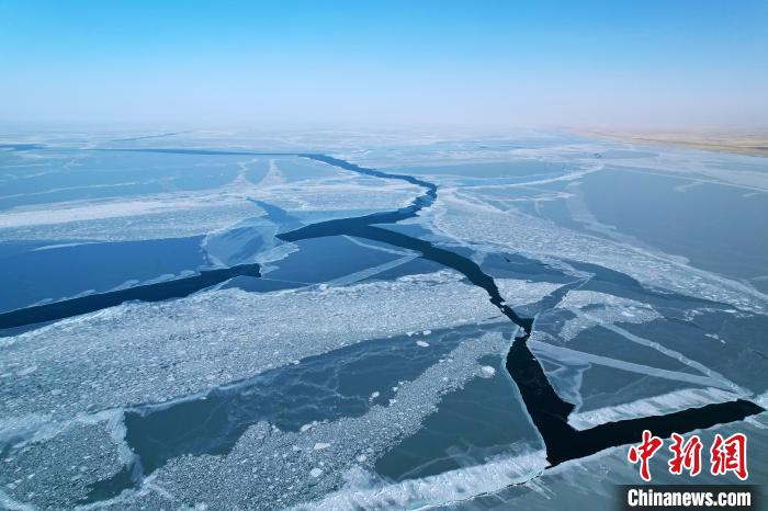 1月24日,記者從無人機視角看到青海湖的白色冰面出現裂縫,露出深藍色的湖水。據了解,受冷空氣影響,1月19日,青海湖流域出現吹風天氣,20日白天,黑馬河氣象站出現16.2米每秒的大風,當日青海湖出現裂縫,長約98.77千米,最寬處寬約1.8千米。專家表示,已完全凍結的青海湖冰面再次出現明顯裂縫,這一現象實屬少見。