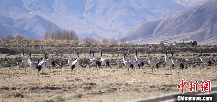 據2022年冬季越冬黑頸鶴種群數量調查顯示,在西藏越冬的黑頸鶴種群數量達11000余只,占中國黑頸鶴總數約三分之二,目前種群數量持續增長,并在西藏全區均有分布。