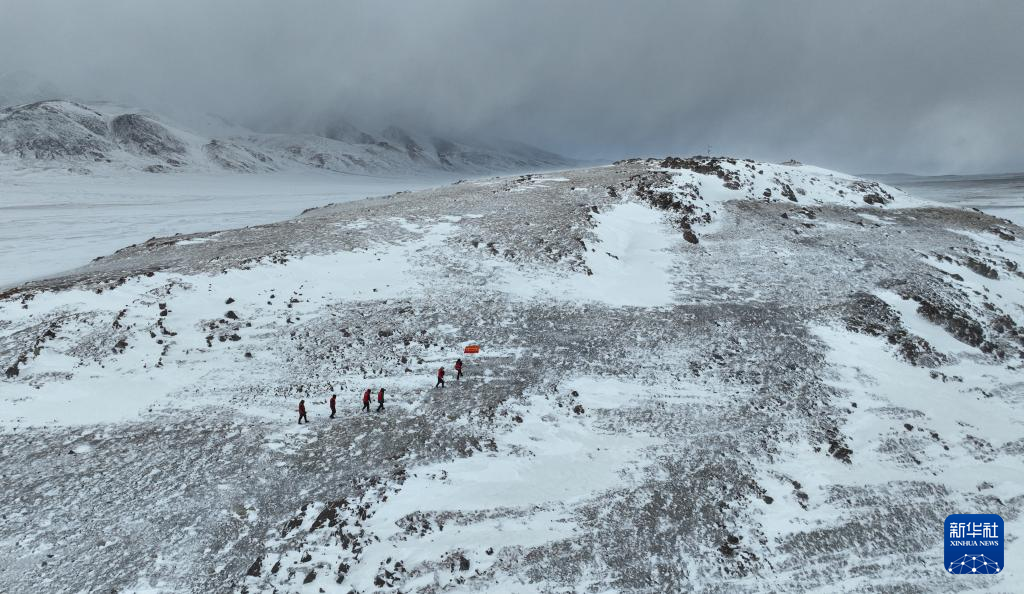 瑪曲鄉長江源黨員環保志愿隊在巡邏守護長江源(2024年2月2日攝,無人機照片)。新華社記者 晉美多吉 攝