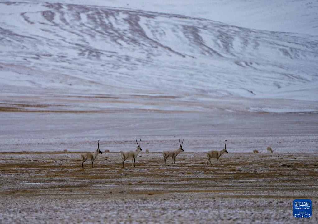 生活在三江源國家公園唐北片區的藏羚羊(2024年2月1日攝)。新華社記者 儲國強 攝