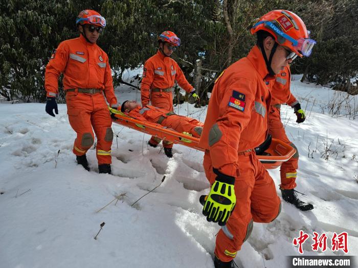圖為拉練中開展冰雪災害失聯人員搜救訓練。西藏林芝市森林消防支隊供圖
