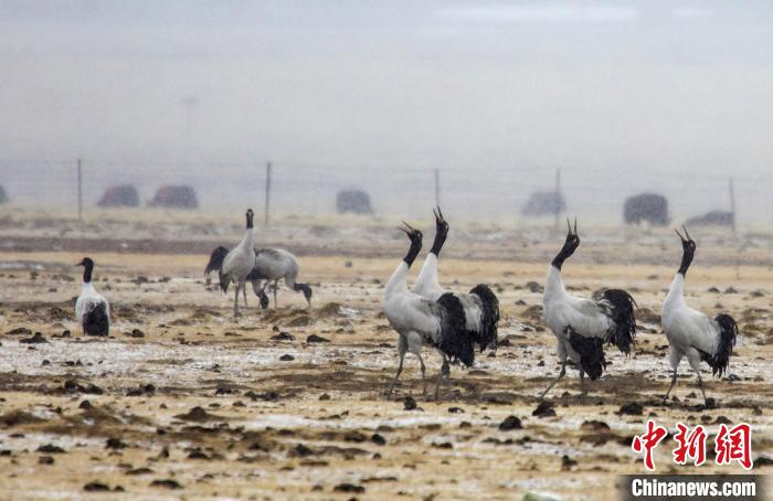 圖為拉薩市當雄縣阿熱濕地里的黑頸鶴。益西旦增 攝