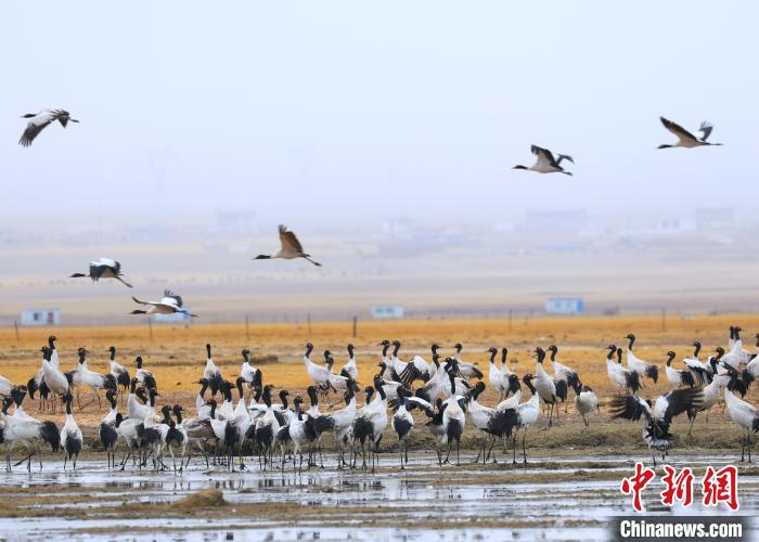 25日,今年首批黑頸鶴如約來到青海玉樹藏族自治州隆寶灘國際重要濕地。 [詳細]