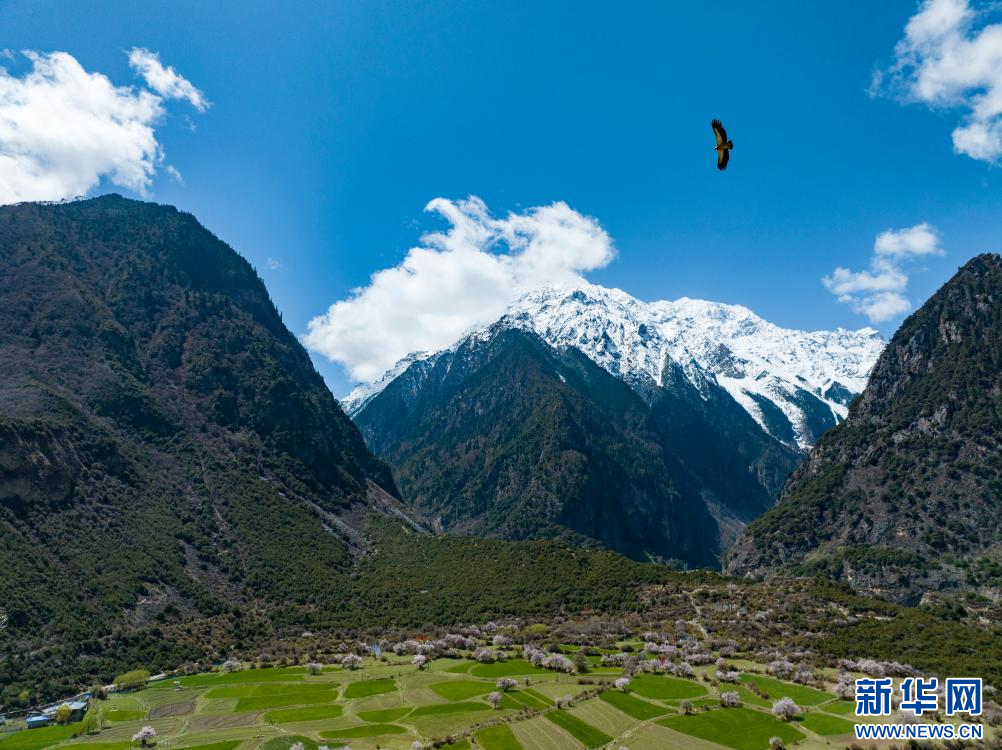 4月18日,在嘉黎縣尼屋鄉境內盛開的桃花(無人機照片)。新華網 旦增努布 攝