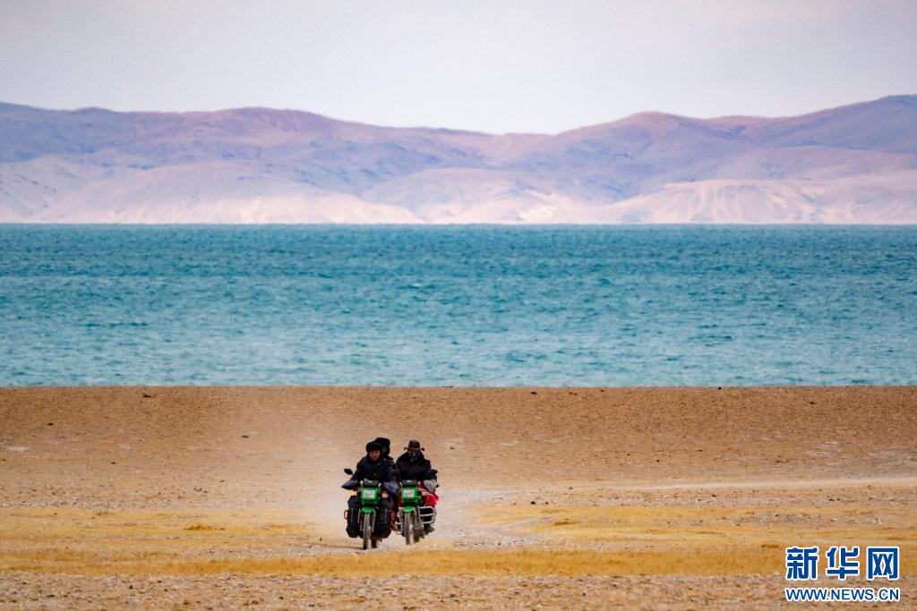 4月14日,野保員次成塔青在色林錯國家級自然保護區巡邏。新華網 旦增努布 攝