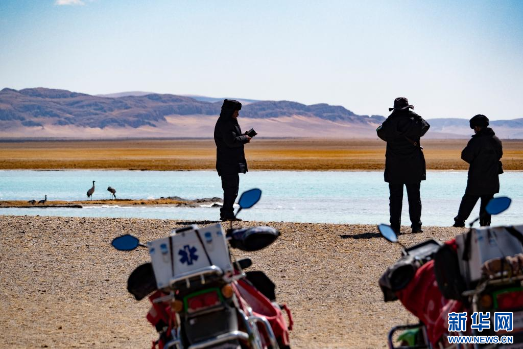 4月14日,野保員前往色林錯國家級自然保護區。新華網 旦增努布 攝