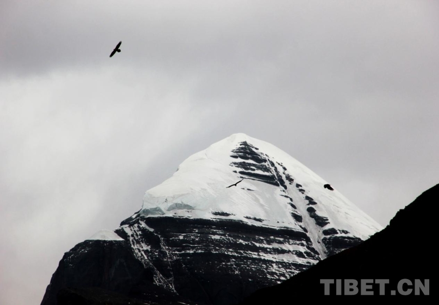 圖為位于西藏自治區阿里地區普蘭縣巴嘎鄉的岡仁波齊周圍群鷹翱翔 攝影:劉莉