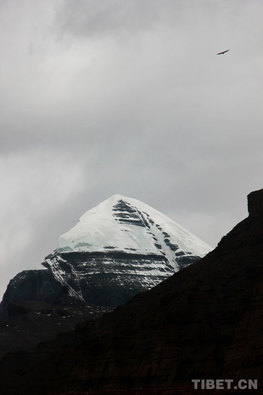 圖為雄鷹飛過位于西藏自治區阿里地區普蘭縣巴嘎鄉的岡仁波齊 攝影:劉莉