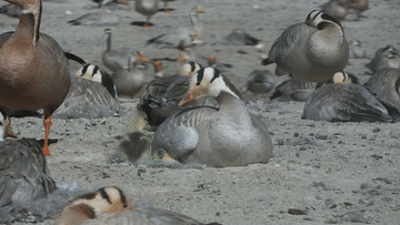 雌性斑頭雁整天窩在蛋上