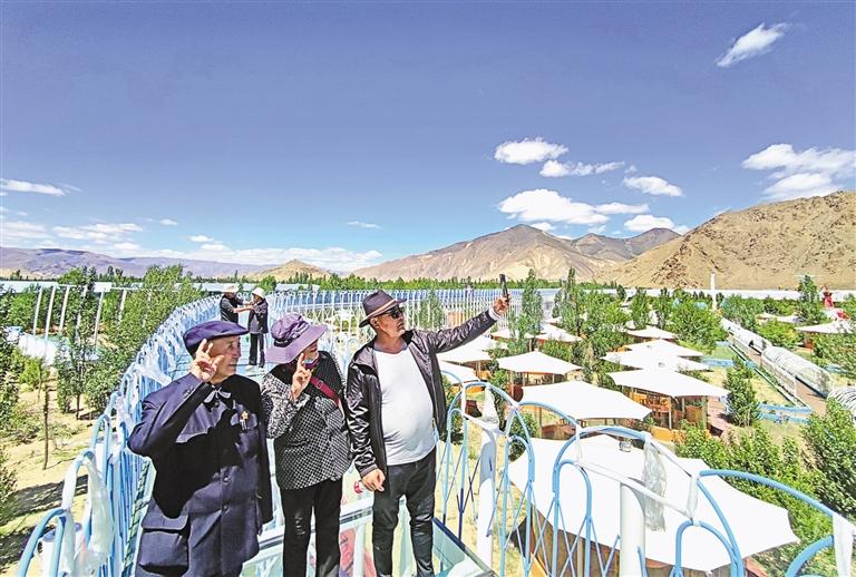 暢游恒溫泳池樂享安康端午、走上玻璃棧道遠眺雅江風景、坐上觀光車打卡車厘子主題園、約上三五好友在花園式露營地“過林卡”……端午假期首日,在山南市扎囊縣桑耶鎮(zhèn)西普農博園,記者看到,扎囊縣在探索“農文旅體”深度融合發(fā)展的道路上,讓鄉(xiāng)村詩意生活越來越有聲有色、有滋有味,吸引了越來越多的游客前來度假游玩。