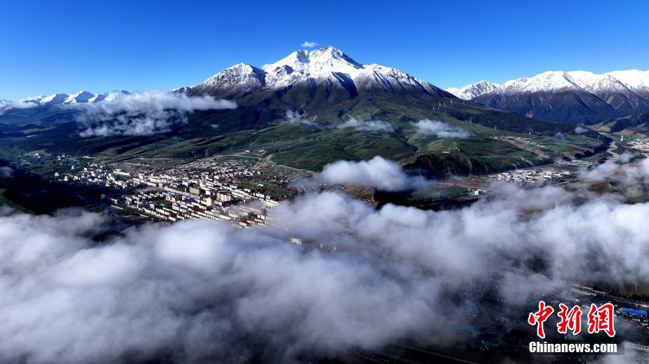 6月,攝影愛好者拍攝到的祁連山腹地青海省海北藏族自治州祁連縣云霧繚繞,云海與雪山、峽谷、森林交相輝映,蔚為壯觀。畫面中,云層飄浮在群山之間,時(shí)而薄如輕紗,時(shí)而團(tuán)若棉絮,形成了美麗的低空云海,山間小城在薄云繚繞下,若隱若現(xiàn),宛若仙境。圖為祁連縣城區(qū)云霧繚繞。
