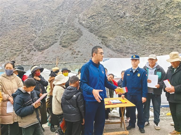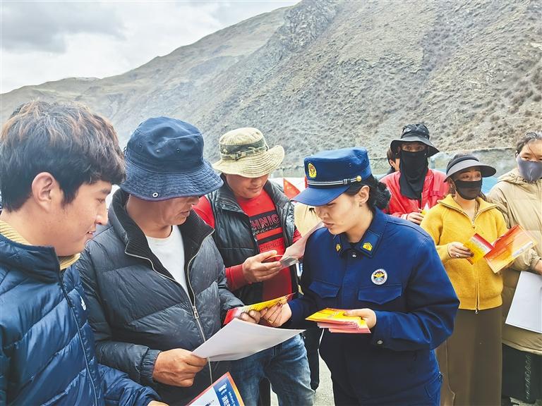 圖為宣傳員在蟲草采挖點向農牧民群眾科普消防安全知識。肖暄 攝