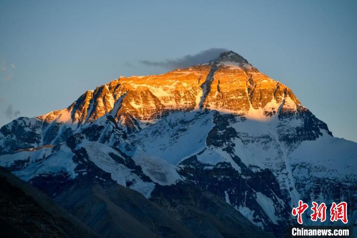 資料圖為西藏日喀則珠峰現“日照金山”景象。貢嘎來松 攝