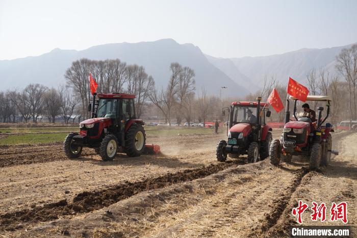 圖為青海省海南藏族自治州貴德縣拉西瓦鎮藏族村民正在進行機械耕作。馬銘言 攝