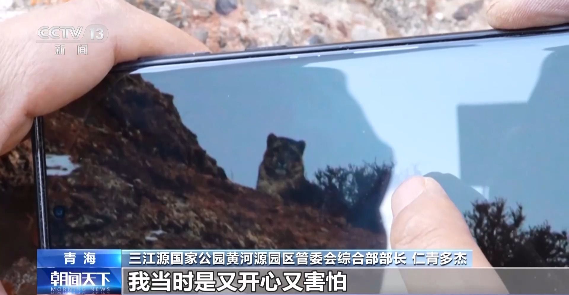 三江源國家公園黃河源園區管委會綜合部部長 仁青多杰:懸崖邊,我把頭一伸,雪豹剛好就在這,我當時是又開心又害怕,它也不驚也不跑。