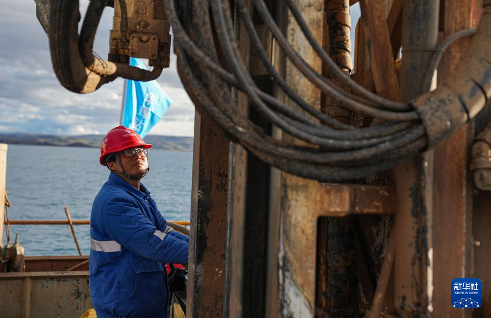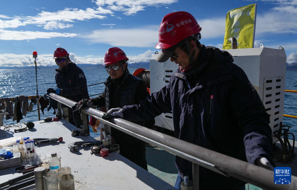 在海拔超過4700米的西藏納木錯,湖泊巖芯鉆探工作正在開展中。