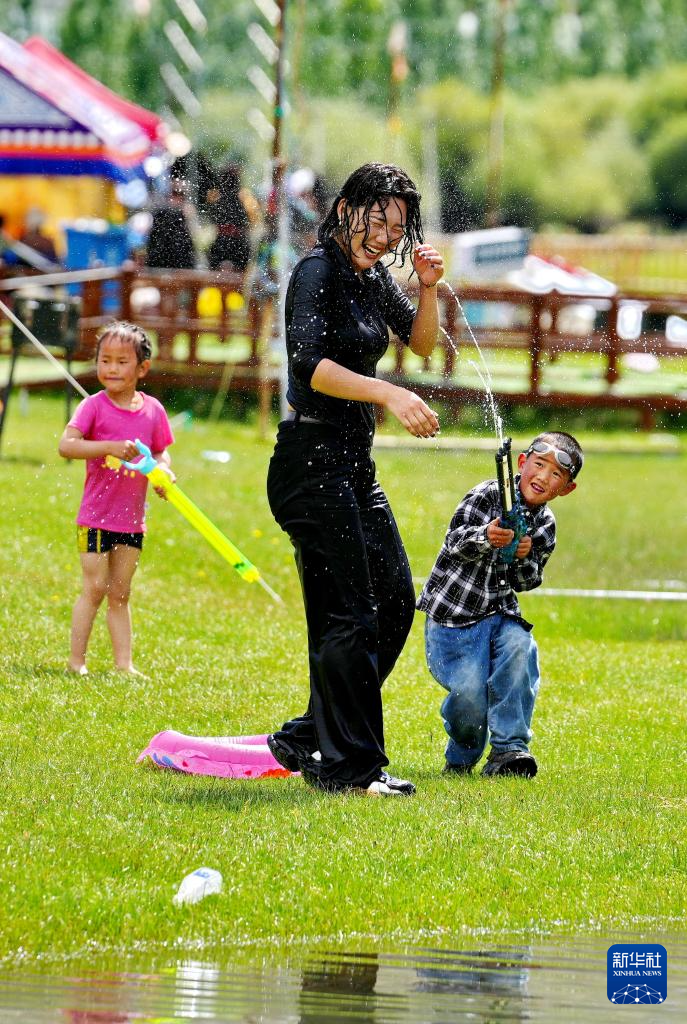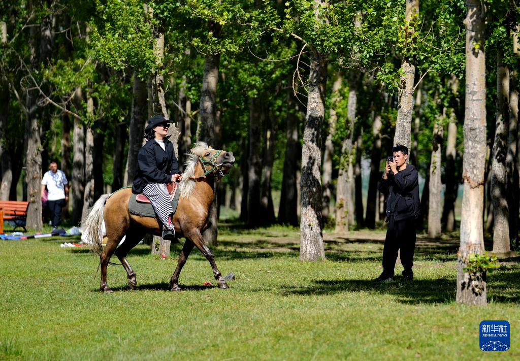 7月14日,當杰村村民在“神秘樹林”藏嘎騎馬樂園里休閑。新華社記者 張汝鋒 攝