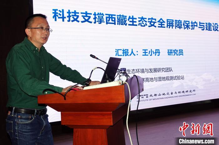 王小丹研究員介紹“科技支撐西藏生態(tài)安全屏障保護與建設(shè)”相關(guān)情況。中新網(wǎng)記者孫自法攝