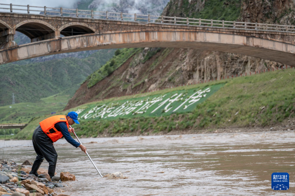 7月21日,在囊謙香達河段,科考隊員在進行底棲生物監測采樣。新華社記者 伍志尊 攝