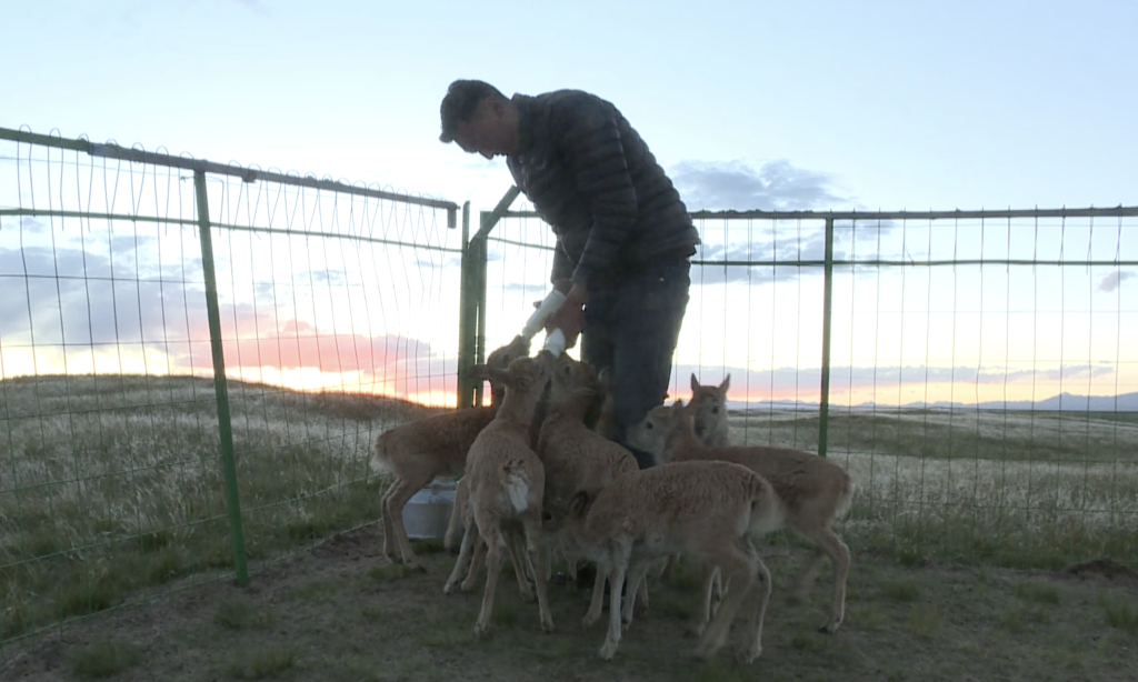 “小藏羚羊剛到保護站的時候身體比較虛弱,狀態不佳。”索南達杰保護站駐站隊員才仁洛松說,隊員們每天需要給小藏羚羊喂三次牛奶,晚上還會在小藏羚羊房間的地上鋪上褥子,保持室內溫度。這種細心的照顧讓保護站的隊員們被大家形象地稱為小藏羚羊“奶爸”。