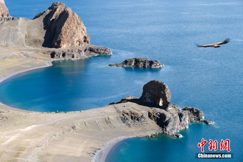 國(guó)慶期間,中新網(wǎng)記者自駕西藏藏北羌塘草原,途經(jīng)“天湖”納木錯(cuò),高原鹽湖班戈湖以及西藏第一大湖色林錯(cuò)等地。秋天高原藍(lán)天白云的映襯下,藏北湖泊猶如一面面巨大的“寶石藍(lán)”鏡子鑲嵌于高原大地,景色壯麗。圖為10月1日,西藏納木錯(cuò)圣象天門風(fēng)光。