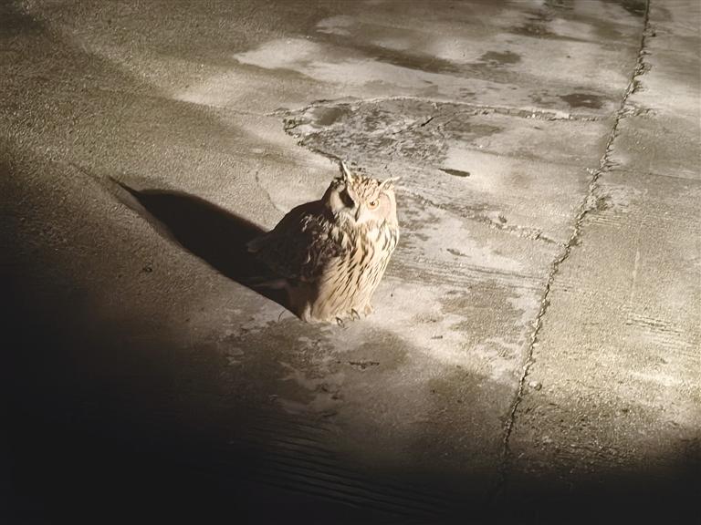 雕鸮隸屬鸮形目鴟鸮科雕鸮屬的大型猛禽,是世界上體形較大的貓頭鷹之一。作為夜行猛禽,雕鸮面盤顯著,淡棕黃色,雜以褐色細斑,后頸和上背部為棕色,頭頂為黑褐色,下腹幾乎為純棕白色,喙和爪為鉛灰色并在陽光下泛著寒光,耳羽特別發達,顯著突出于頭頂兩側。