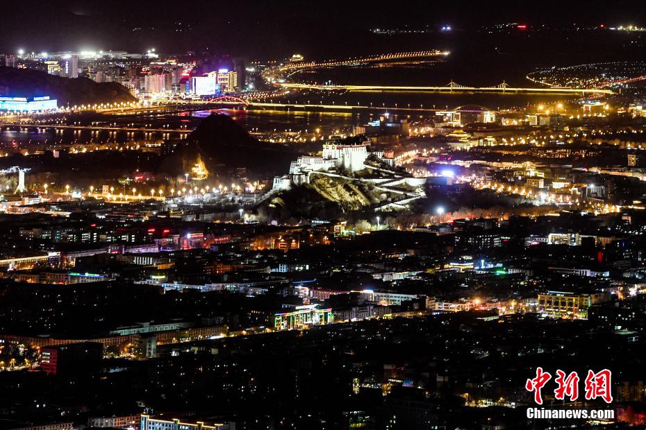 12月24日晚,西藏自治區拉薩市燈光璀璨,布達拉宮夜景迷人。