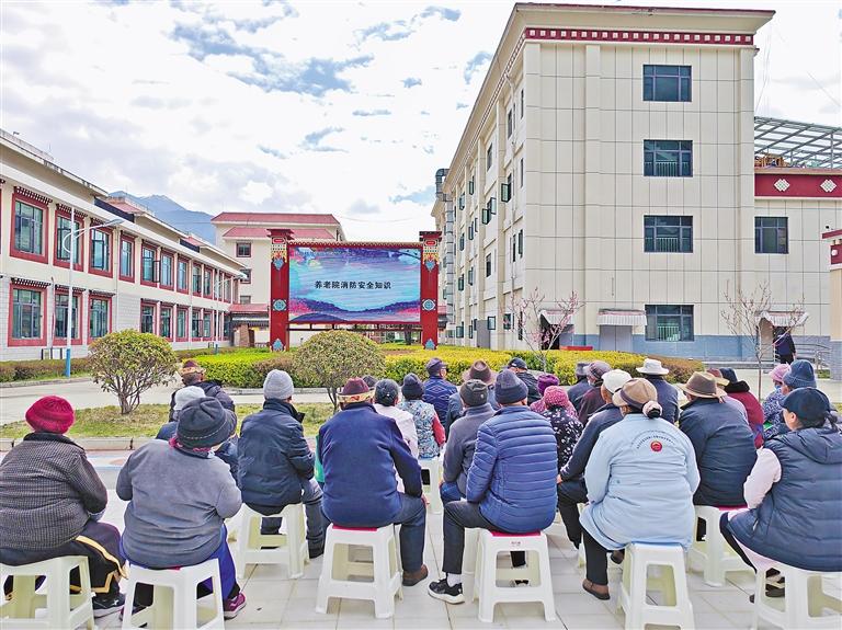 林芝市巴宜區消防救援大隊宣傳人員走進養老機構開展消防安全宣傳。通訊員 才旺多吉 攝