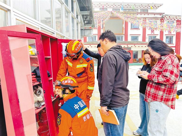 林芝市墨脫縣消防救援大隊宣傳人員檢查養老機構微型消防站的消防器材。通訊員 才旺多吉 攝