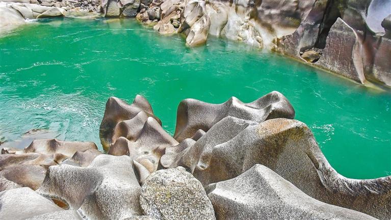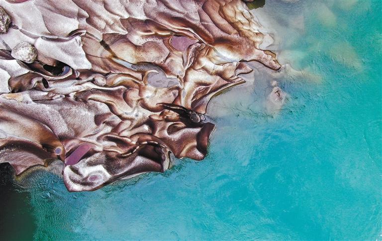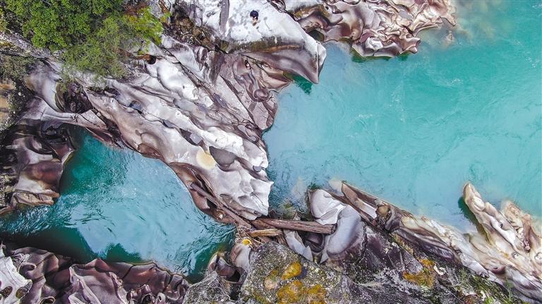 在丙察察公路接近察隅縣城的位置,國道219線與559線交匯點,有一處由水流反復沖刷激蕩出的地質奇觀——水磨巖。
